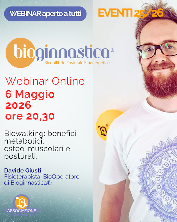 Relatore: Davide Giusti Fisioterapista e BioOperatore e BioIstruttore di Bioginnastica® Unisciti a noi per esplorare il connubio tra camminata consapevole e Bioginnastica®.